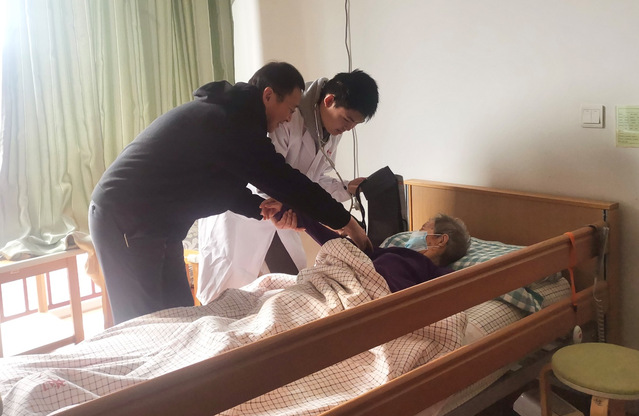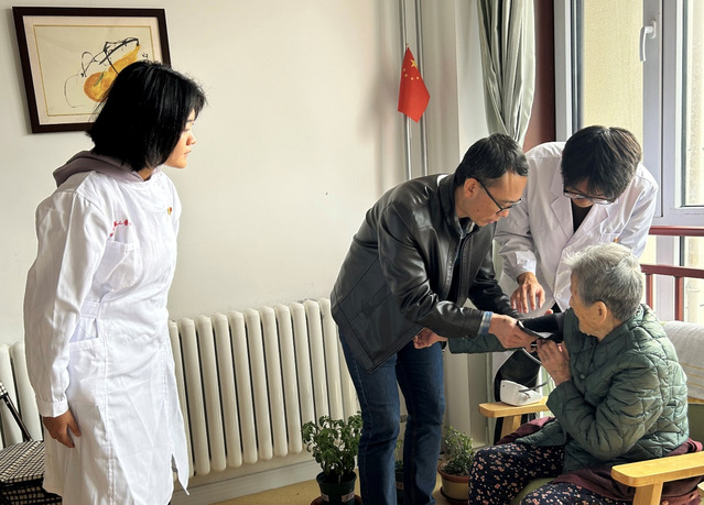 护理学院党总支教工党员分队带领南丁格尔志愿服务队的志愿者们到社区养老院开展义诊活动,为老人们测量血压和血糖,检查心肺功能,细致询问老人们的日常作息习惯,根据老人们的身心状态,给予专业的健康指导和饮食建议。